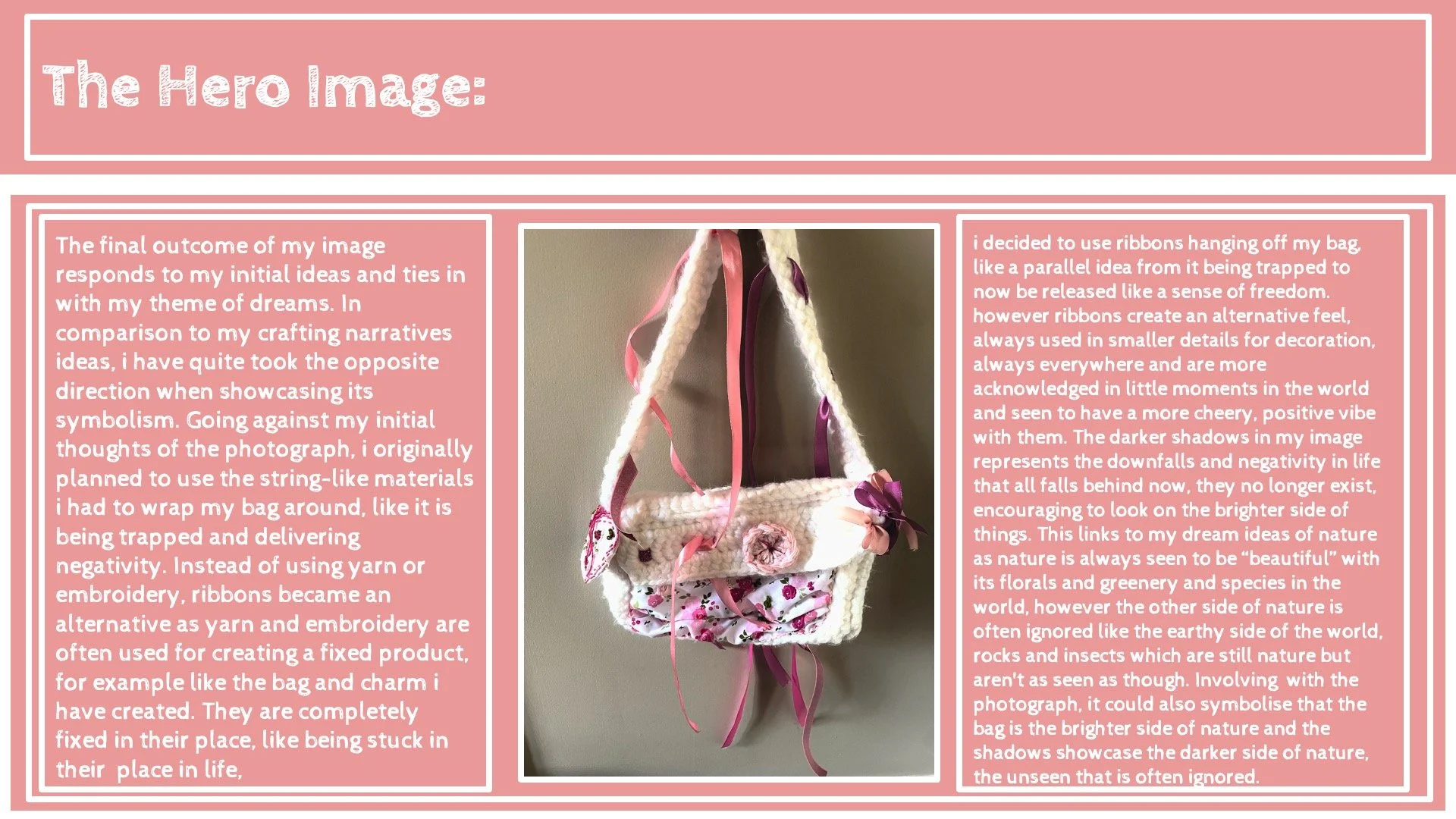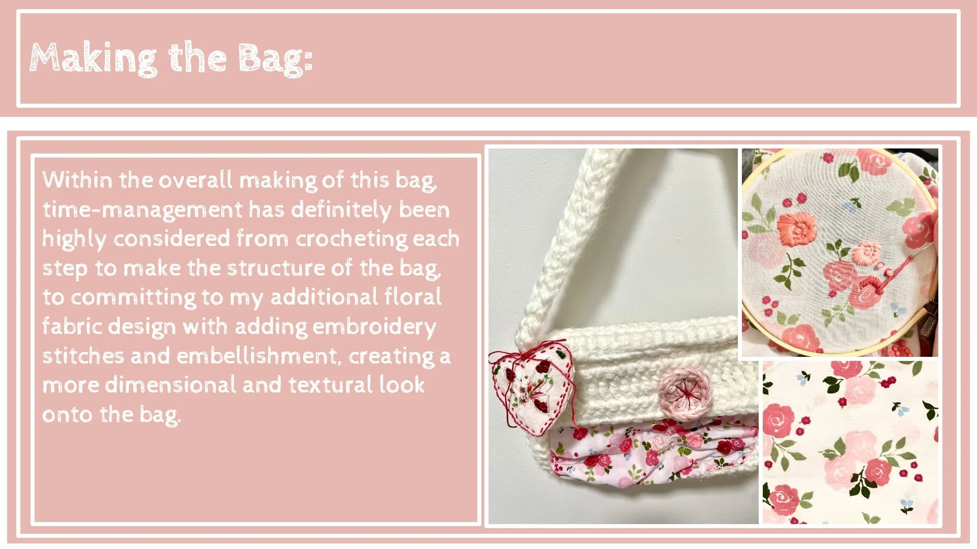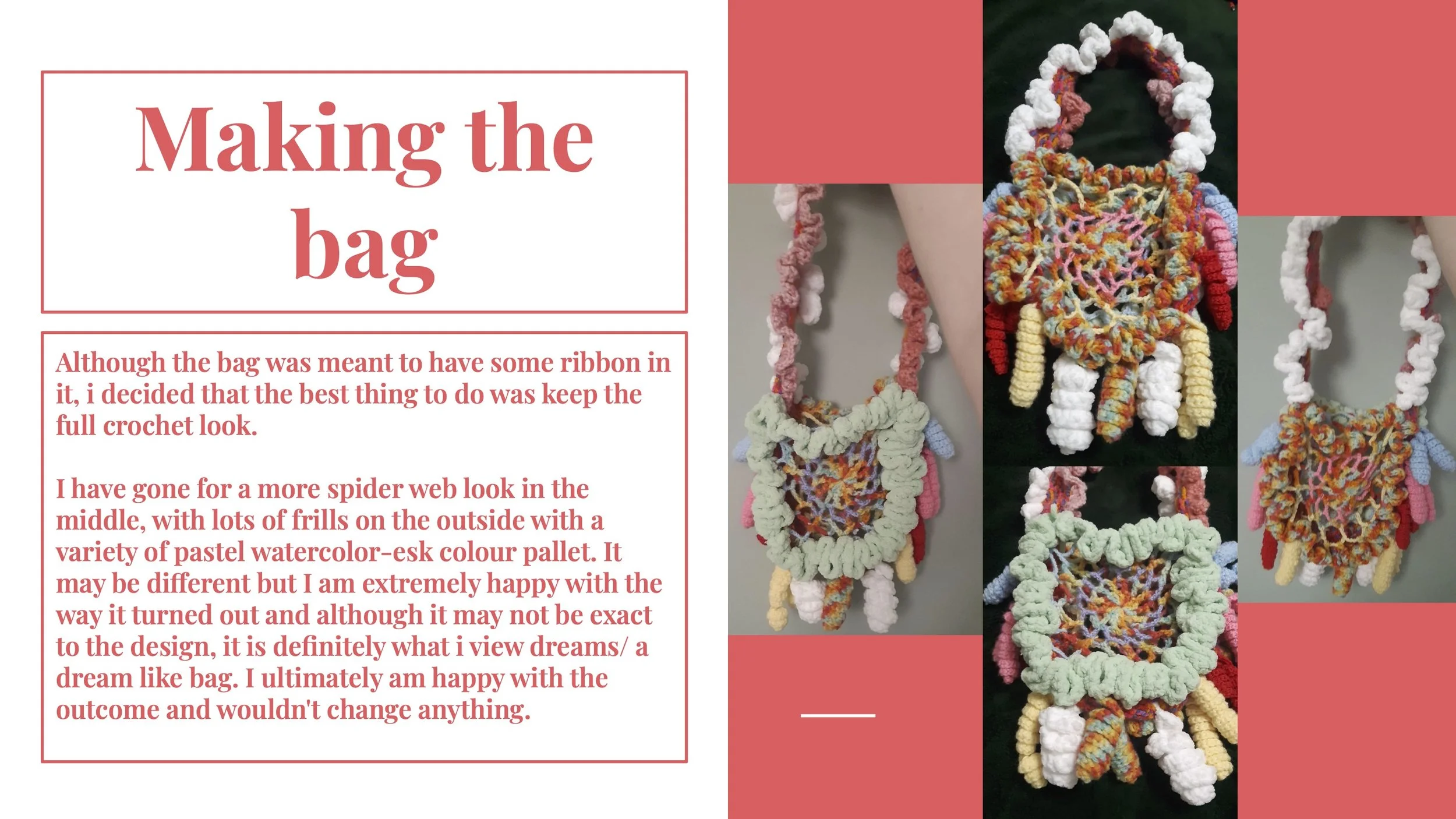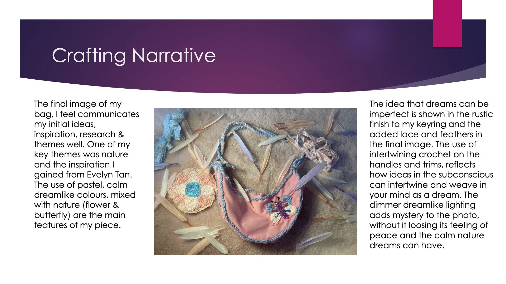 Dream Diaries invites students to merge the timeless craft of crochet with the surreal world of dreams. In this project, participants will design and create a whimsical crochet bag inspired by the symbolism of dream catchers. To personalize their creation, they’ll also craft an embroidered keyring that represents a dream or meaningful memory to hang from the bag.