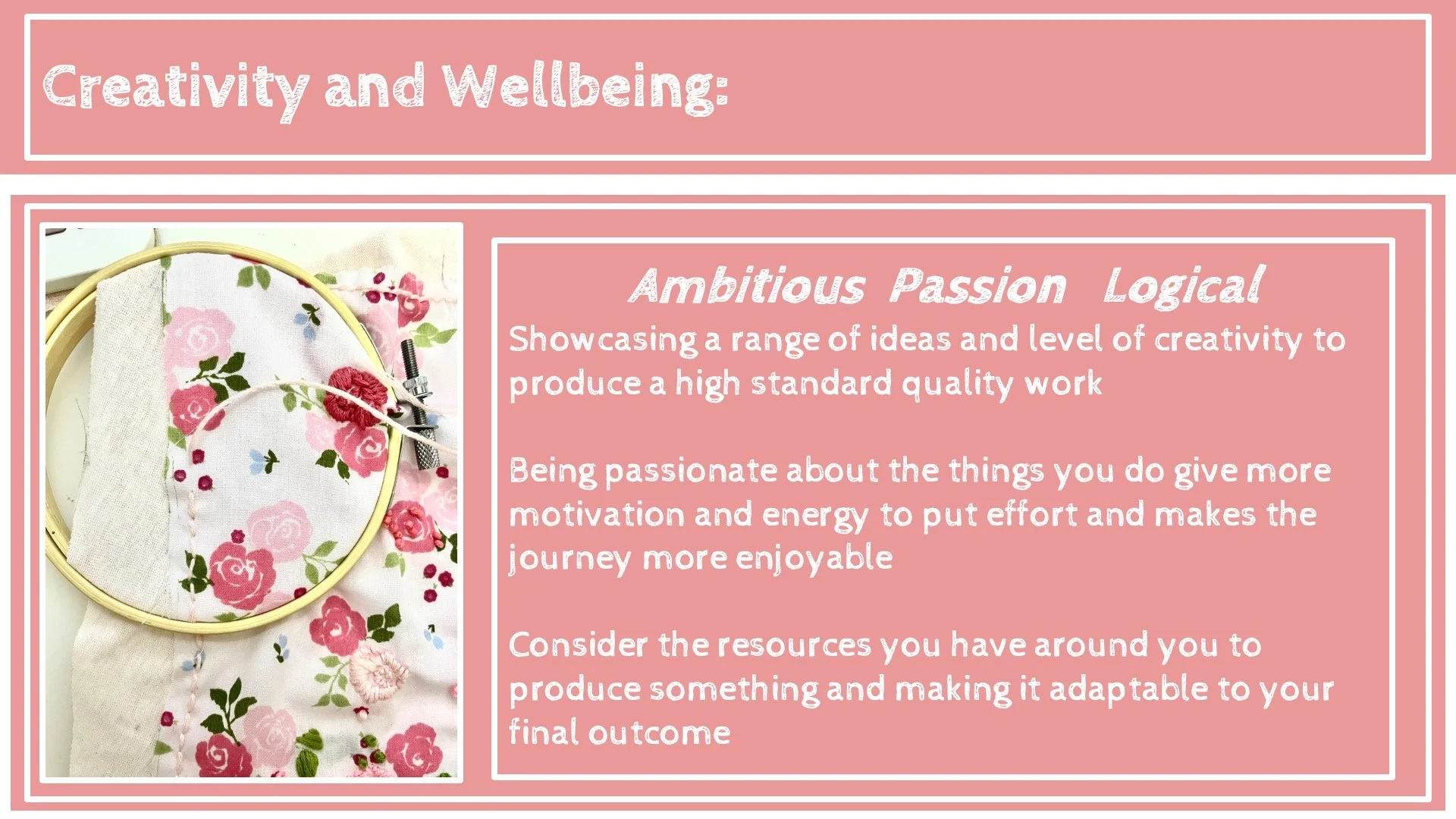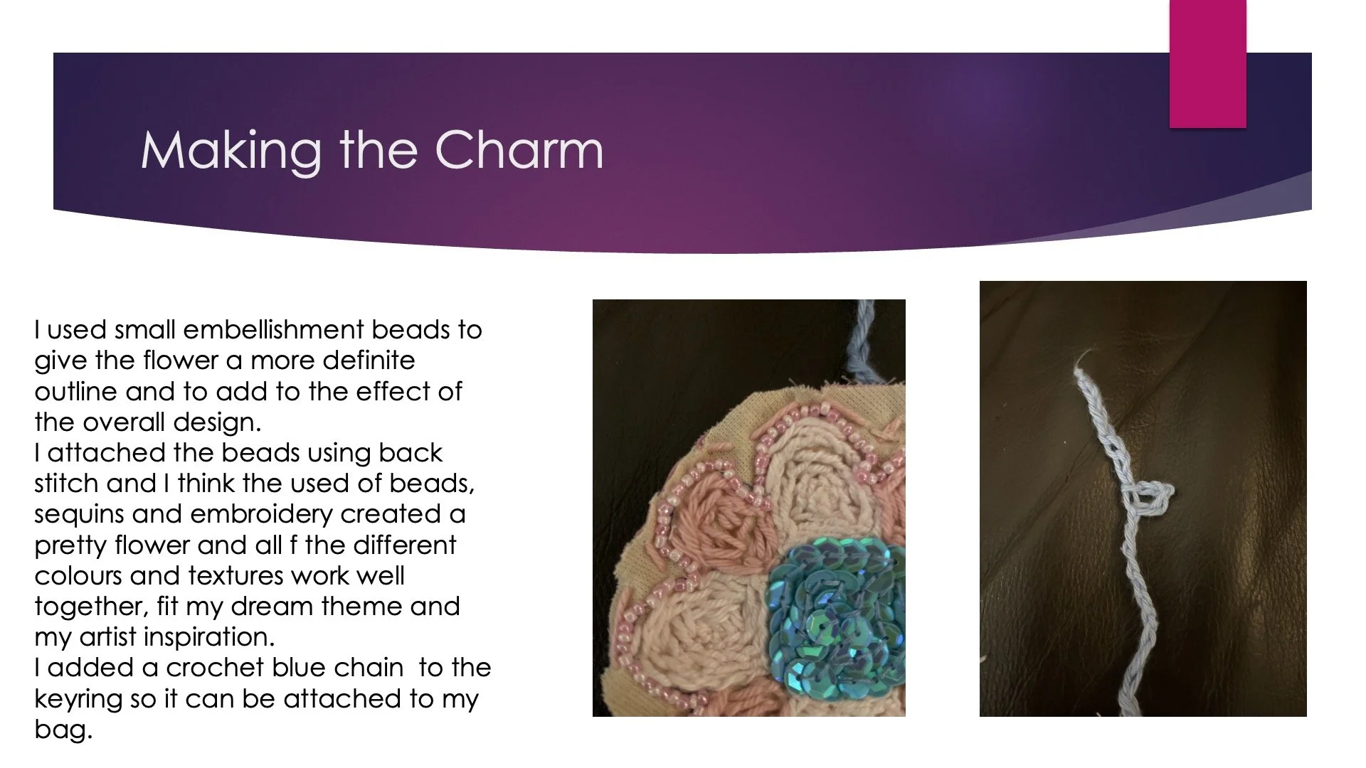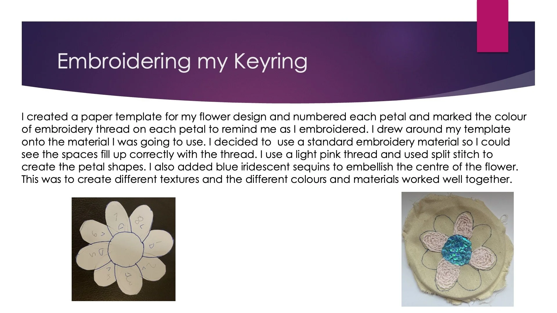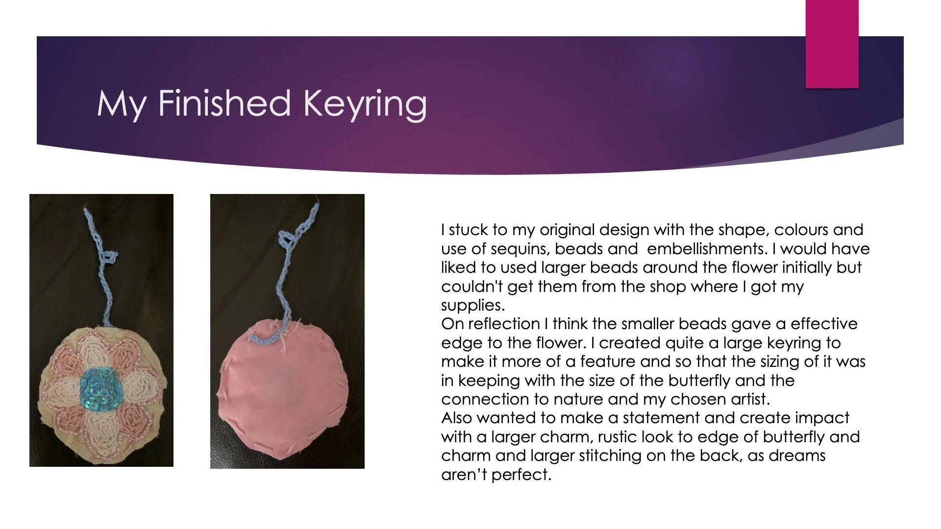 Embroidery: Practice simple embroidery to create a keyring that represents a personal dream.
